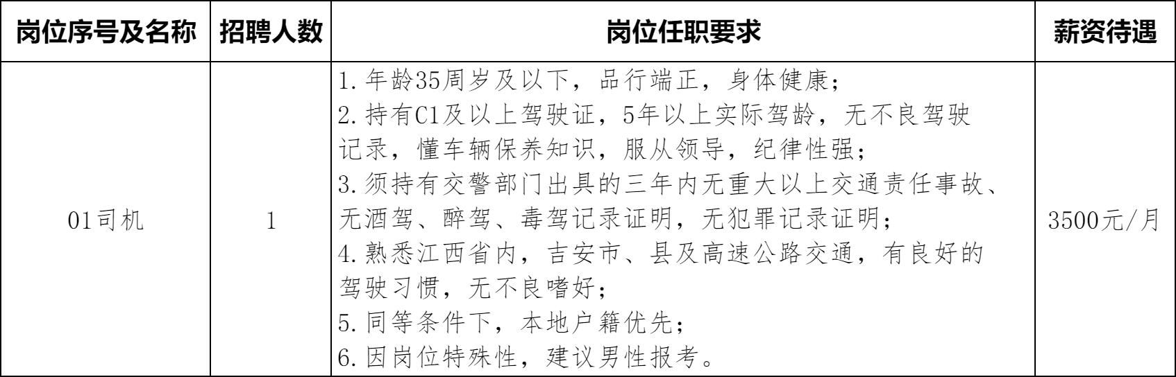 吉水县园区开发建设有限公司2025年面向社会公开招聘1名司机的公告