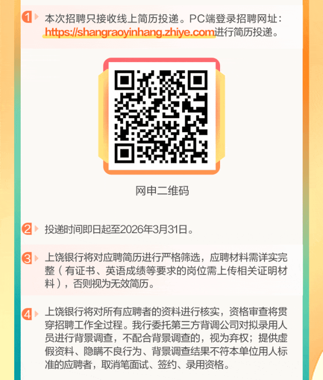 上饶银行2026年春季招聘